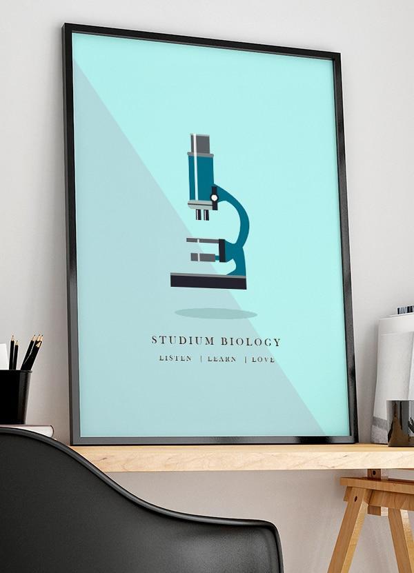Plakaten præsenterer et stilrent design med teksten “Studium Biology”, hvilket gør den ideel til at pryde væggene i dit studieområde, stuen eller ethvert rum, hvor kreativitet og læring blomstrer. Det visuelle udtryk kombineret med det meningsfulde budskab gør denne plakat til et must-have for enhver studerende inden for biologiske fag.