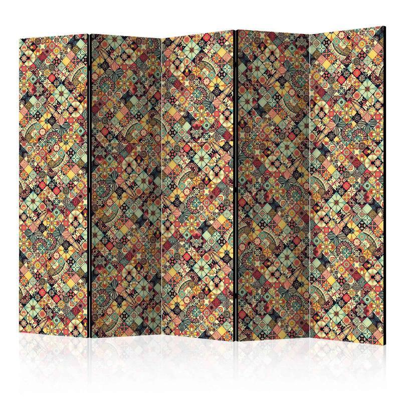 Opdag den fantastiske **Skærmvæg Rainbow Mosaic II**, som vi stolt præsenterer hos Art Factory. Denne skærmvæg er ikke blot en praktisk løsning til at opdele rum, men også et kunstværk, der tilfører liv og farve til ethvert hjem. Med sine mål på 225×172 cm er denne skærmvæg designet til at skabe en iøjnefaldende effekt, uanset hvor den placeres.