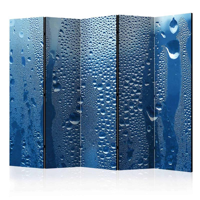 Opdag den elegante skærmvæg, **Water Drops On Blue Glass II**, en ægte perle i vores sortiment hos Art Factory. Denne skærmvæg er ikke blot en praktisk løsning til at opdele rum; den er også et kunstværk, der tilfører dybde og karakter til ethvert rum. Med sine imponerende dimensioner på 225×172 cm, tilbyder denne vægdekoration både funktionalitet og æstetik.